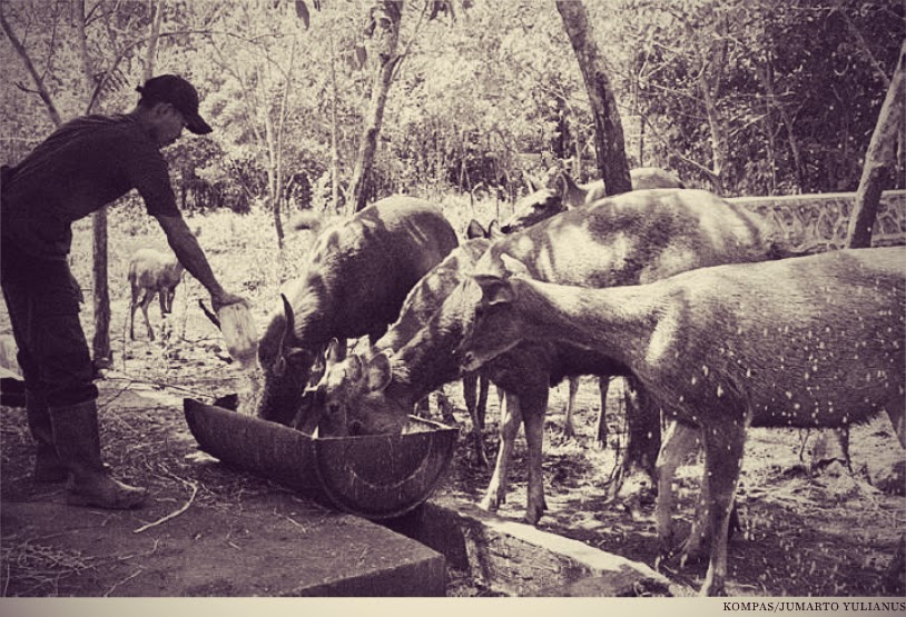 tersebut. Dua petugas itu bertugas memberi makan rusa setiap pagi dan sore.